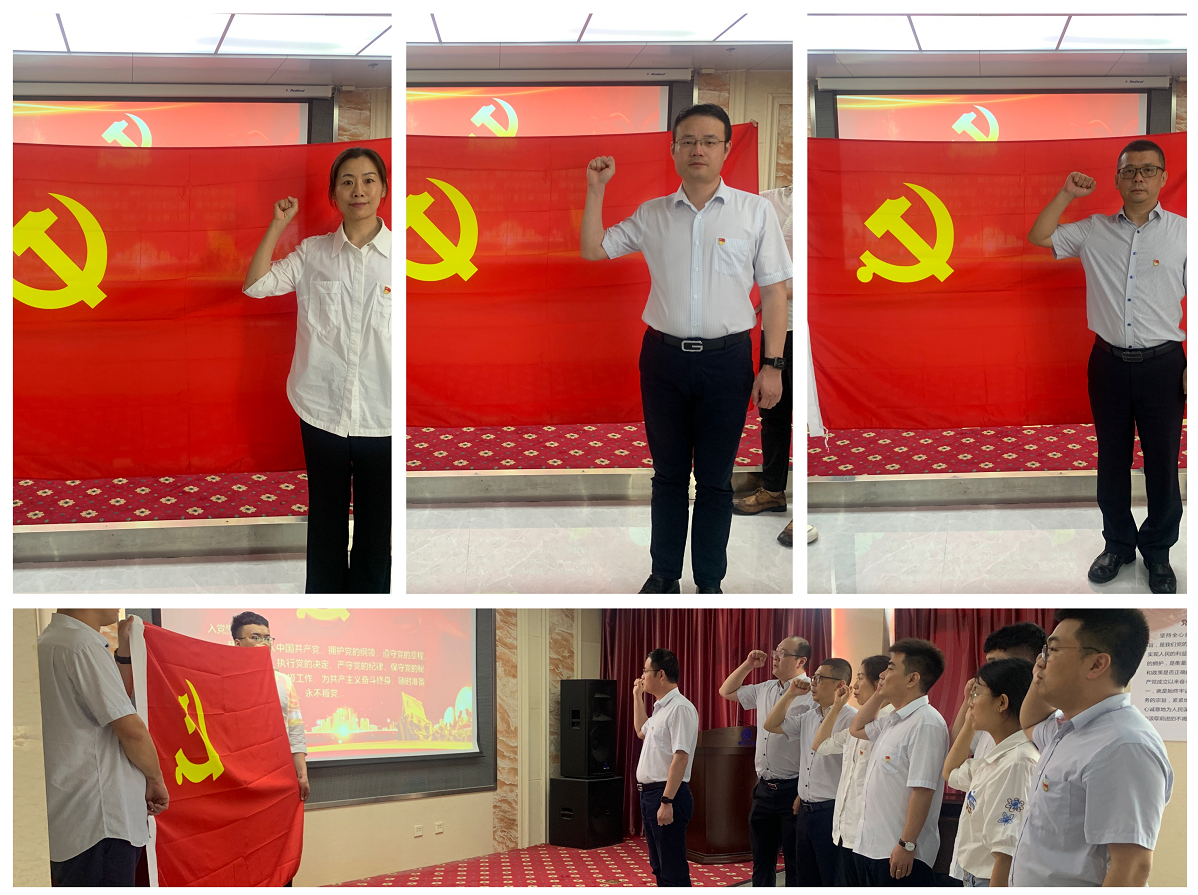 隨后全體員工懷著激動心情在慶祝建黨100周年的橫幅上寫下了對祖國對民族的深深祝福,以拳拳赤子之心表達(dá)最熾熱的愛國愛黨之情;全體黨員在這極為特殊的日子,面向黨旗莊嚴(yán)宣誓,用最真摯的誓言抒發(fā)最誠摯的情感,最后每一名黨員分別同黨旗合影......在這神圣的時刻與黨旗并肩而立,與黨旗同框定格,我們心潮澎湃、不忘初心。