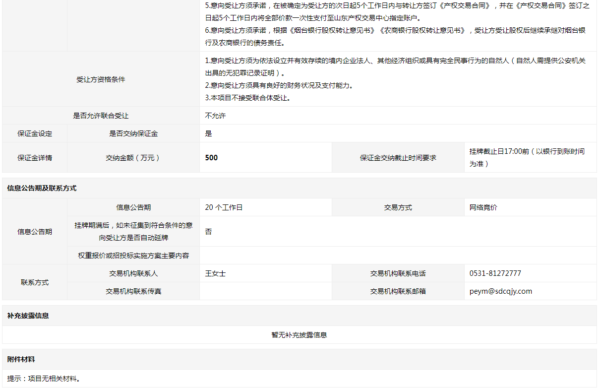 • 轉(zhuǎn)讓方:煙臺市元融投資集團(tuán)有限公司