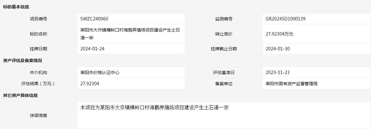 萊陽市大夼鎮(zhèn)橫嶺口村海鵬養(yǎng)殖場(chǎng)項(xiàng)目建設(shè)產(chǎn)生土石渣一宗