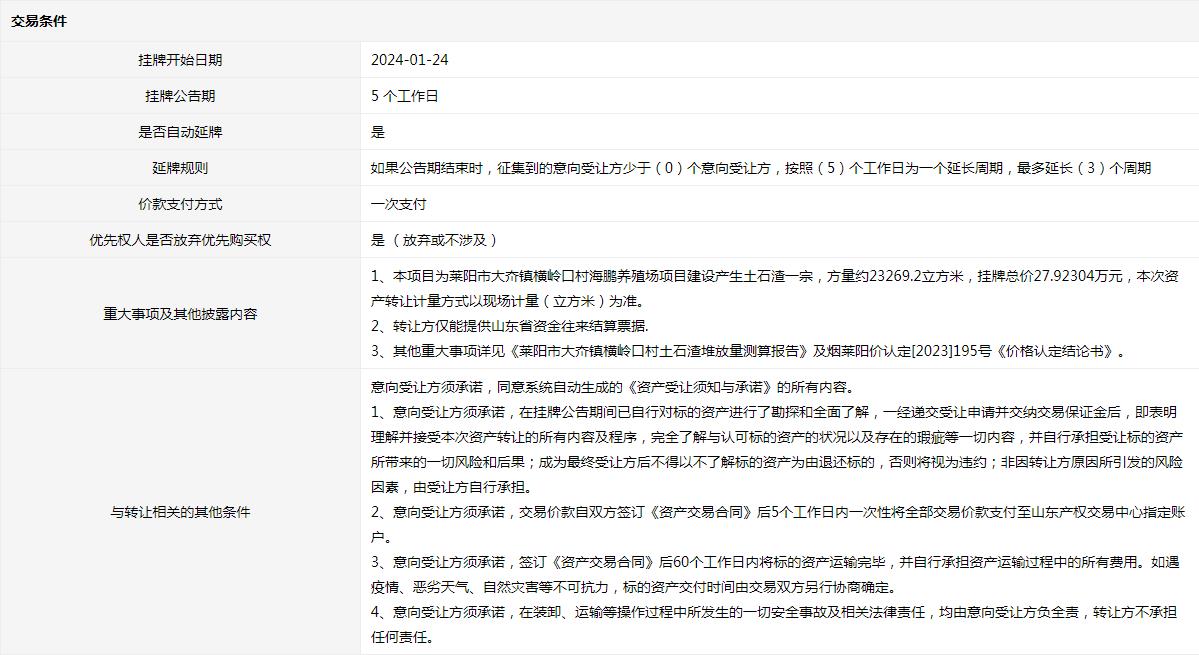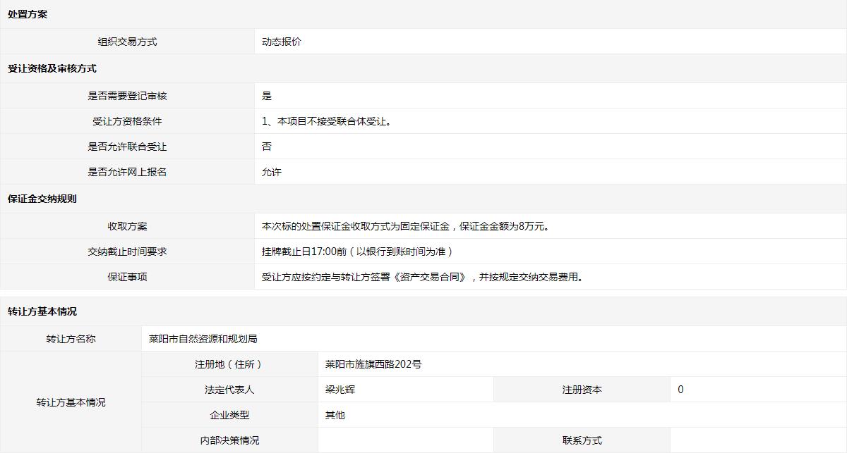 • 轉(zhuǎn)讓方:萊陽市自然資源和規(guī)劃局