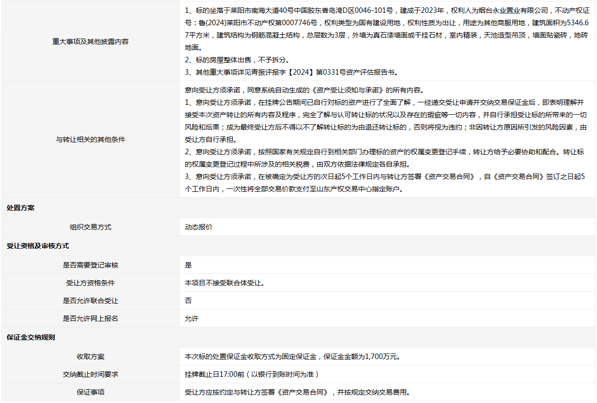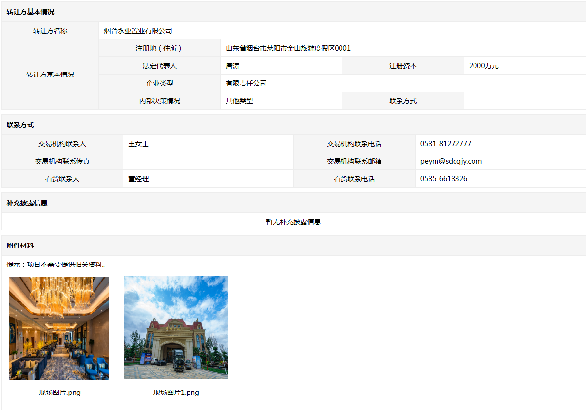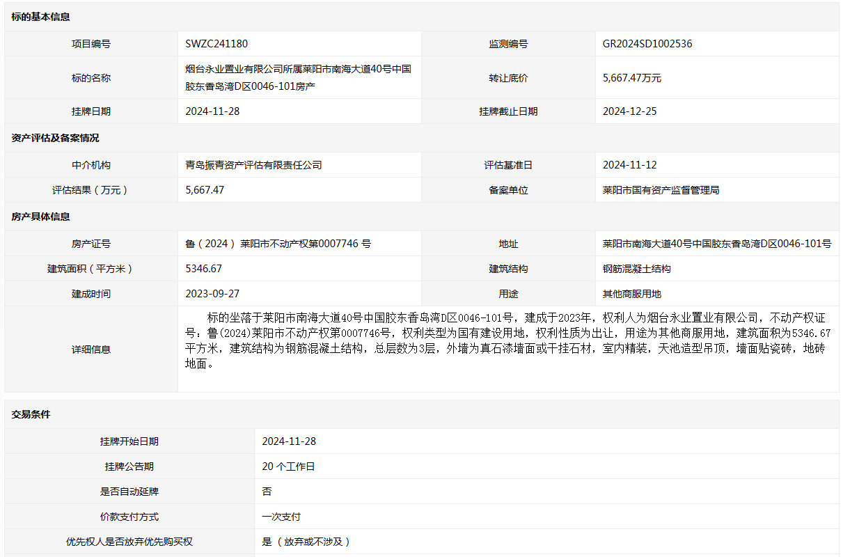 • 轉(zhuǎn)讓方:煙臺永業(yè)置業(yè)有限公司