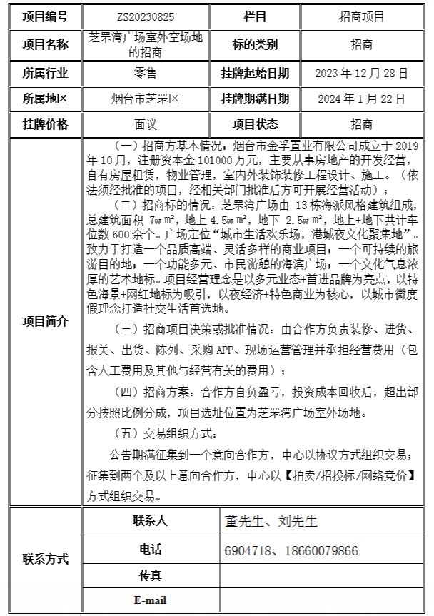 芝罘灣廣場室外空場地的招商
