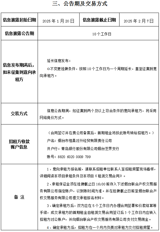 • 掛牌起止日期:2025年01月20日至2025年07月30日