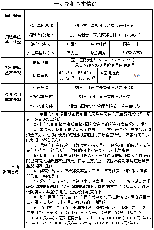 煙臺市芝罘區(qū)機場路223號房地產招租