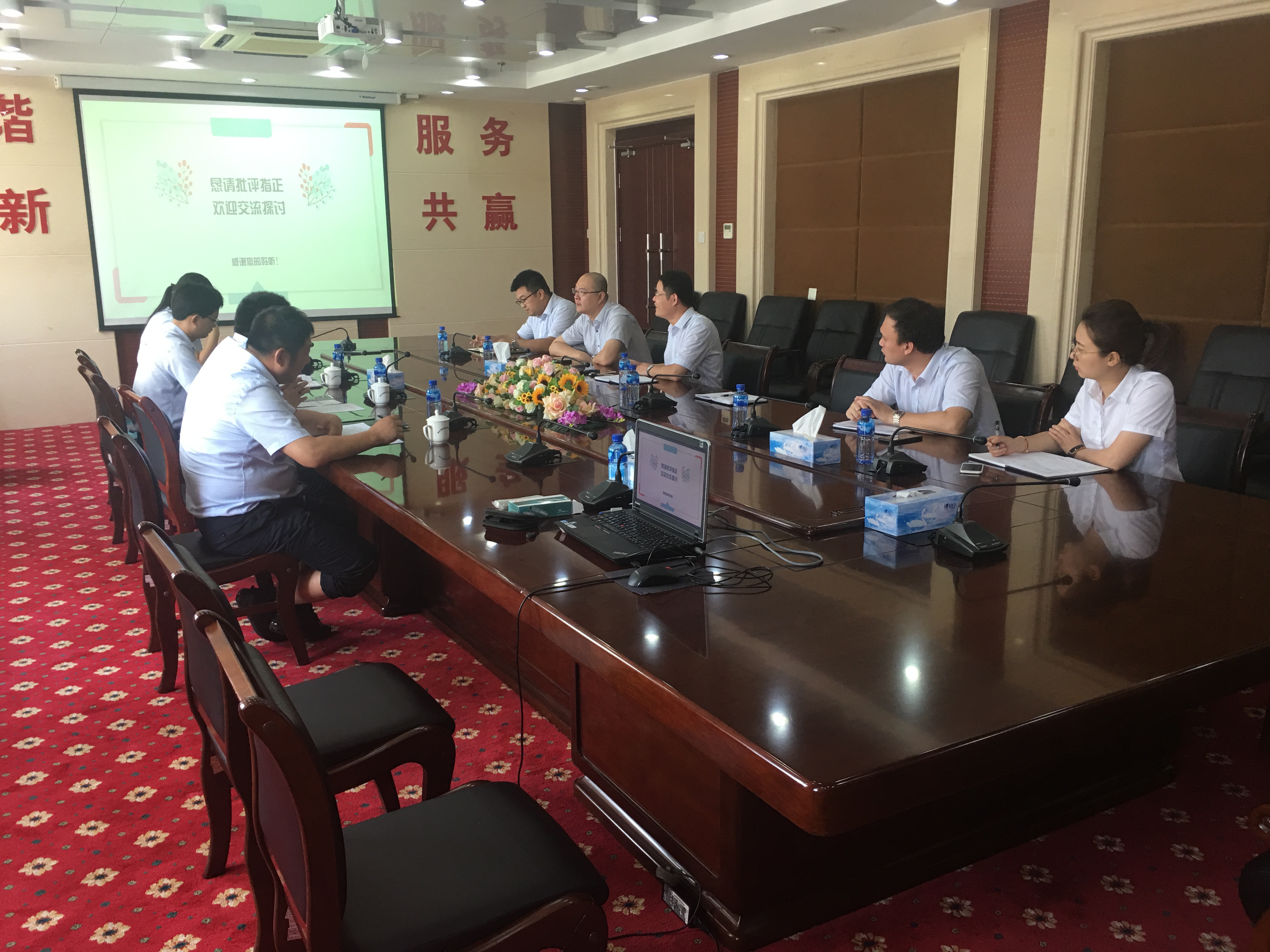 76上午,山東招金集團(tuán)有限公司相關(guān)部門負(fù)責(zé)人一行到訪煙臺(tái)聯(lián)合產(chǎn)權(quán)交易中心(以下簡(jiǎn)稱“聯(lián)合產(chǎn)權(quán)”),莊天文總經(jīng)理熱情接待了招金集團(tuán)一行并組織召開(kāi)座談會(huì)。